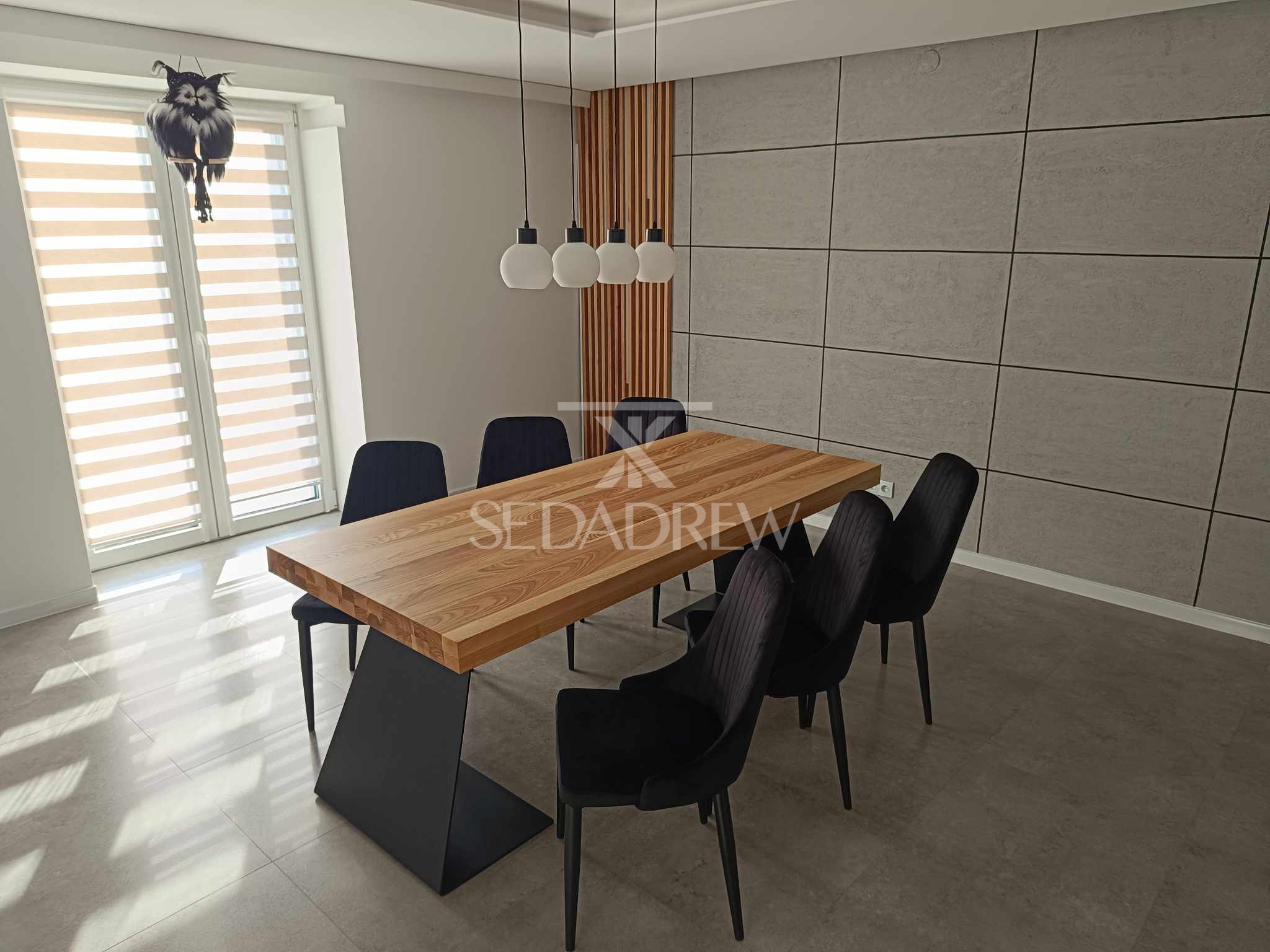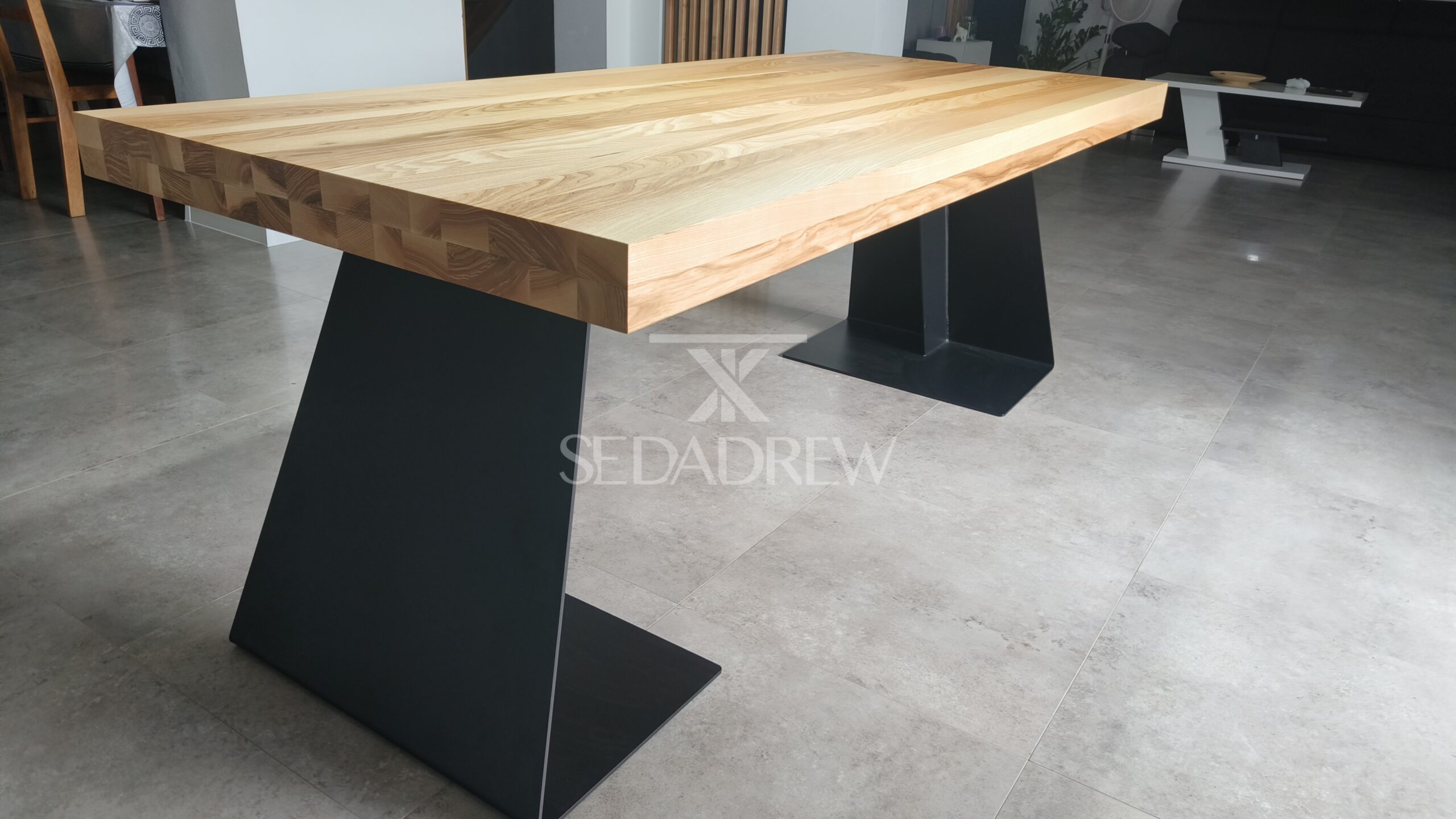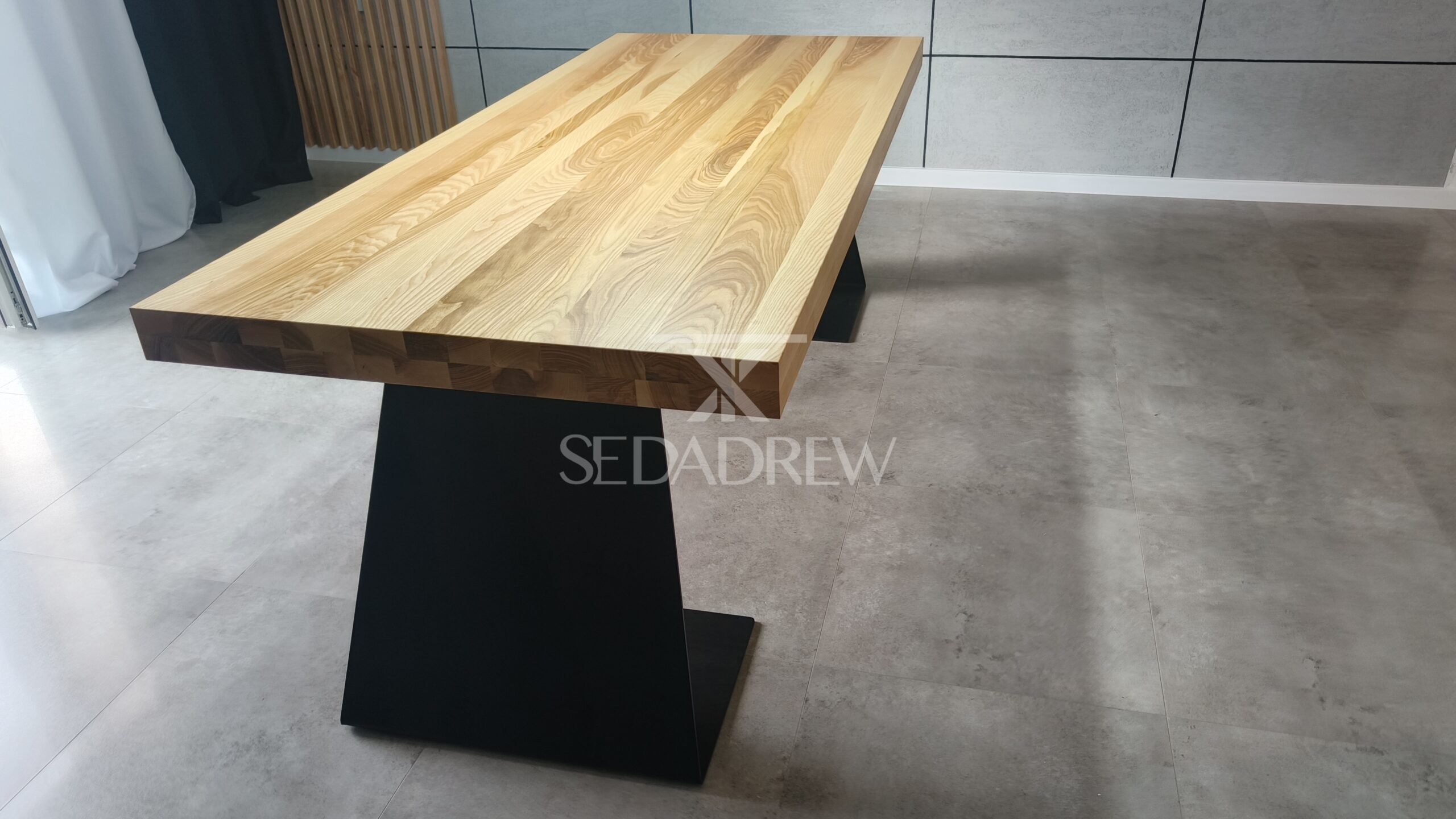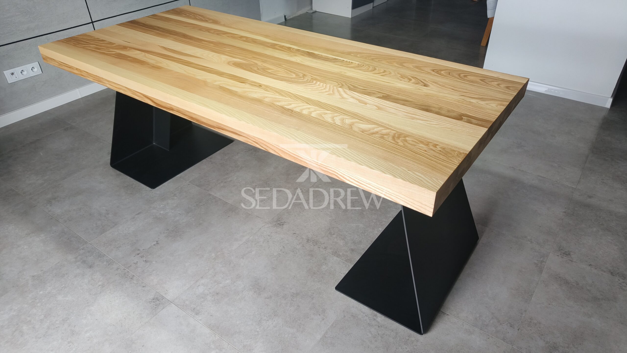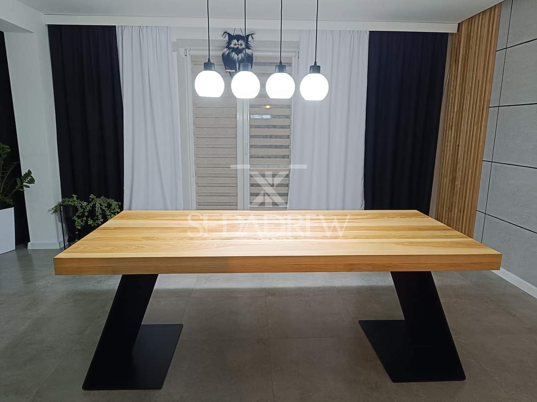 – blat jesionowy 200x90cm o grubości 4cm, dodatkowo pogrubiony po obwodzie do 8cm