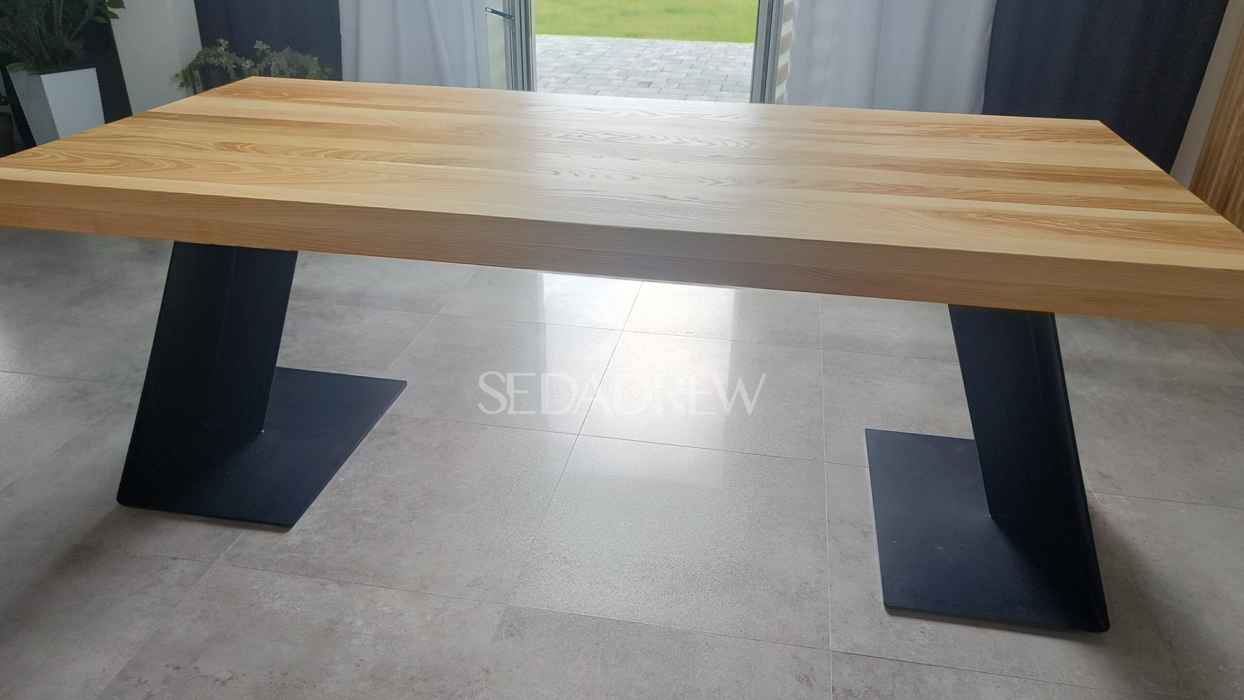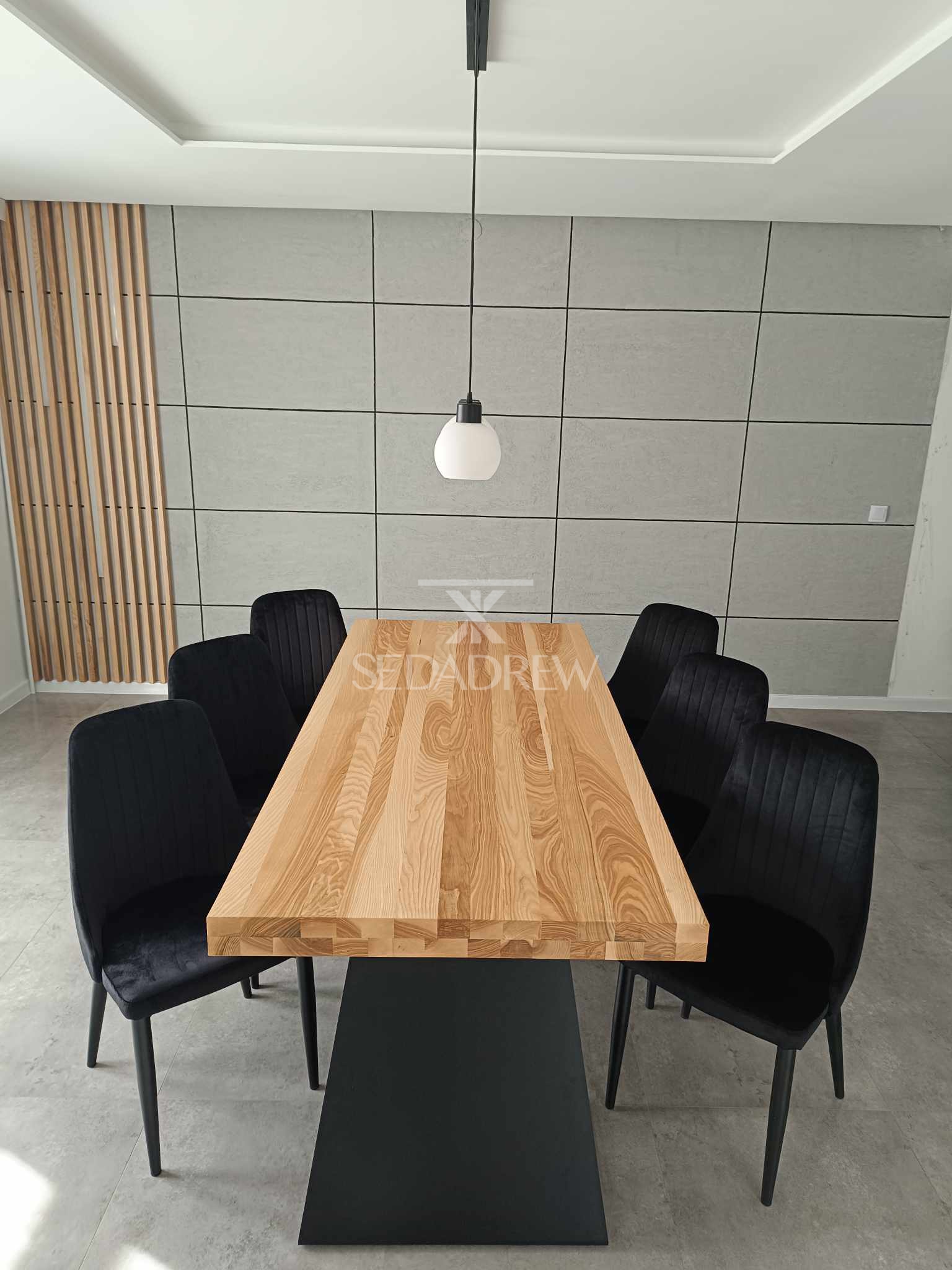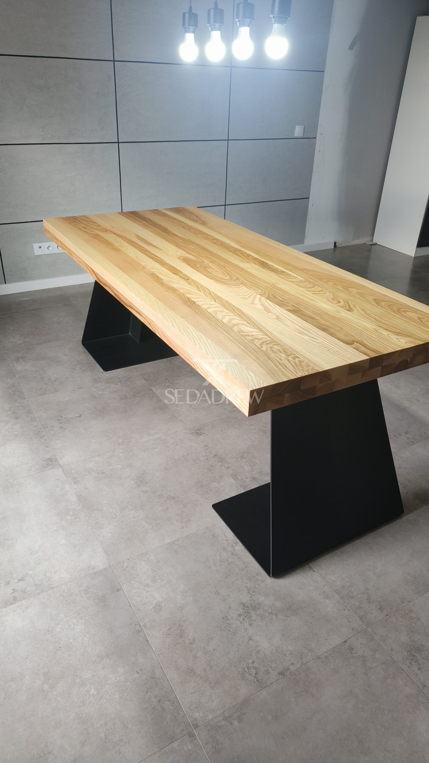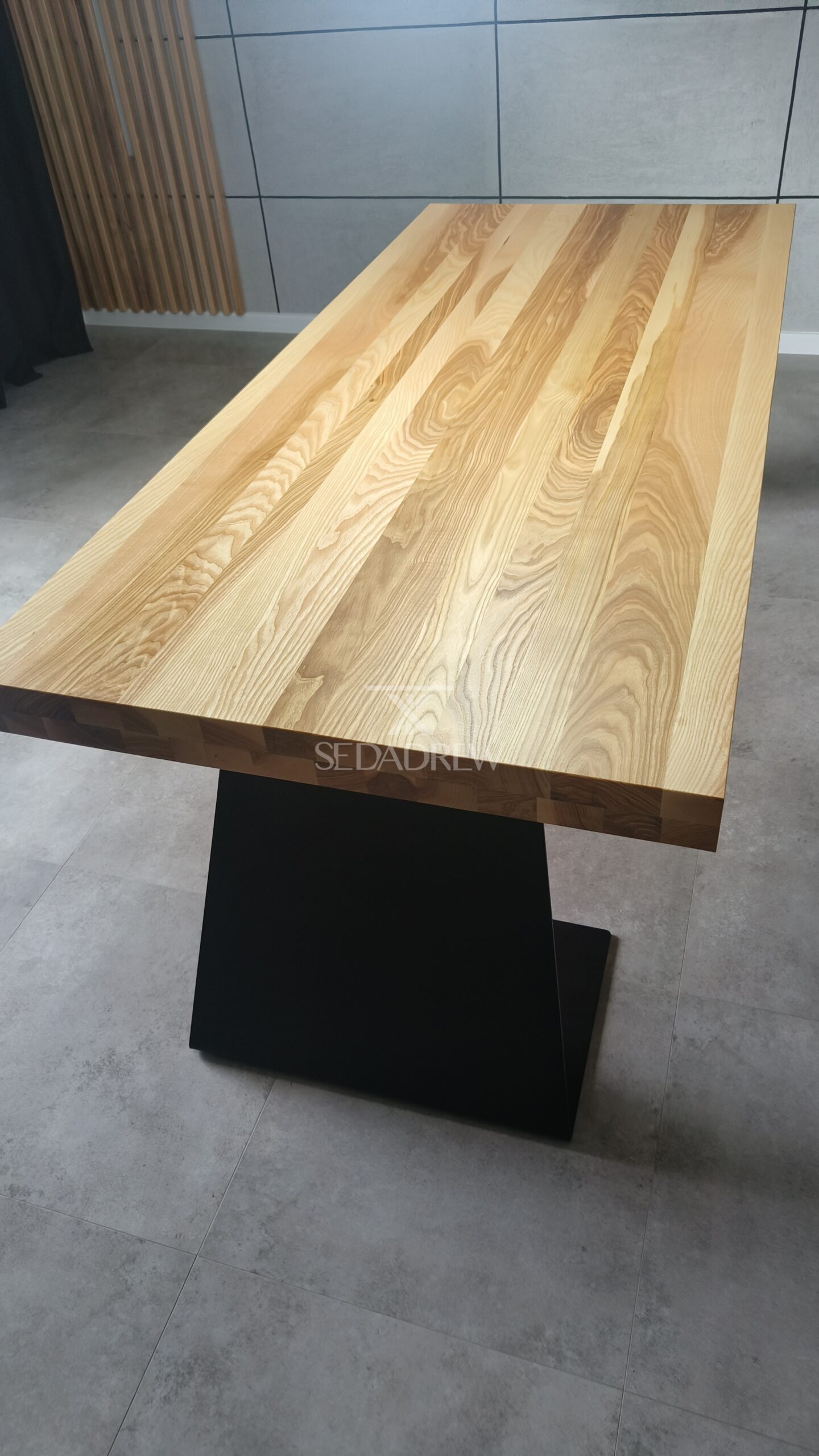 – blat jesionowy 200x90cm o grubości 4cm, dodatkowo pogrubiony po obwodzie do 8cm