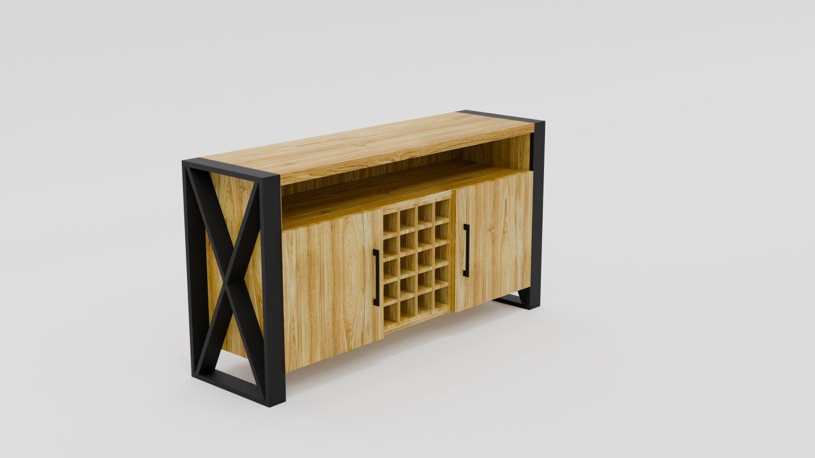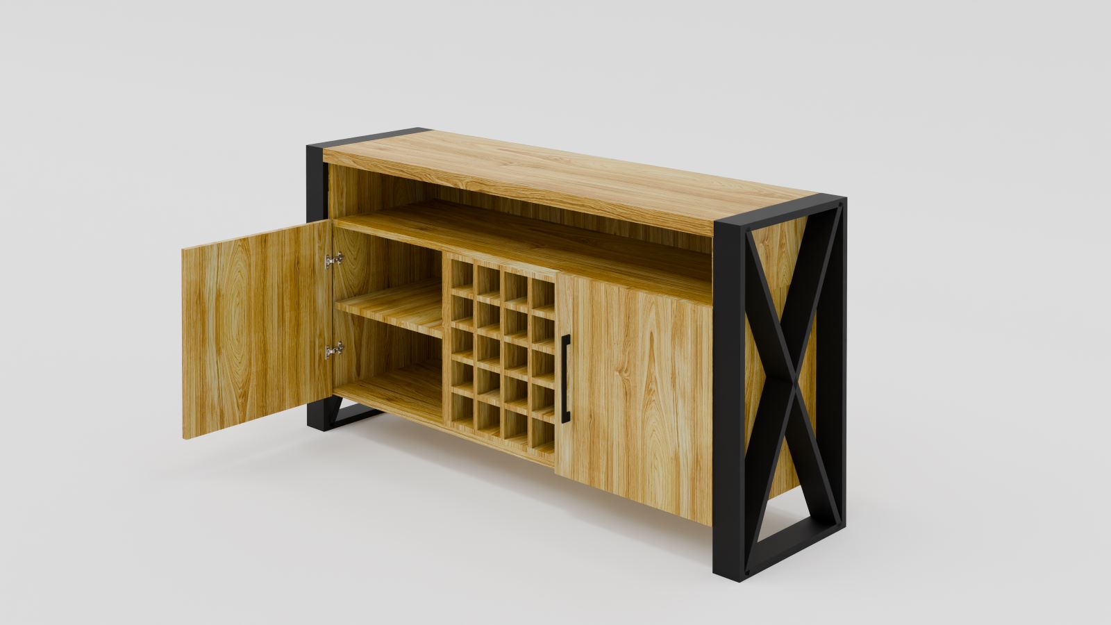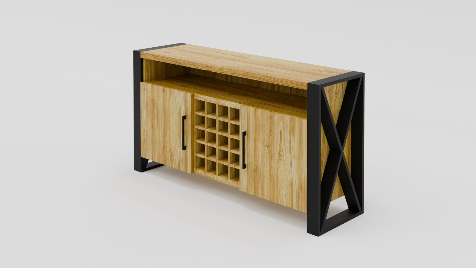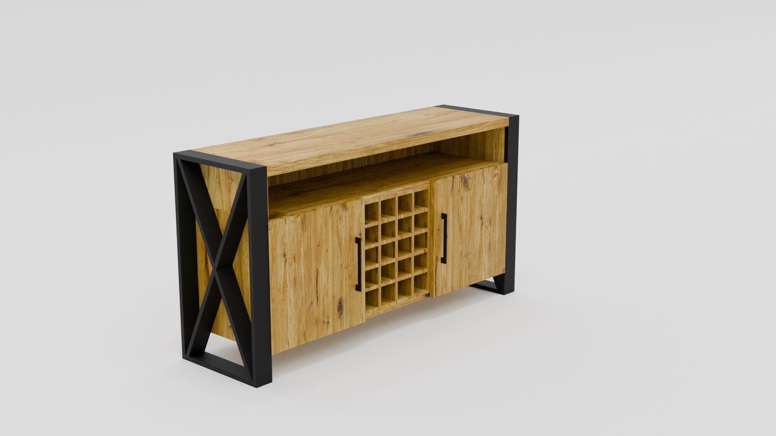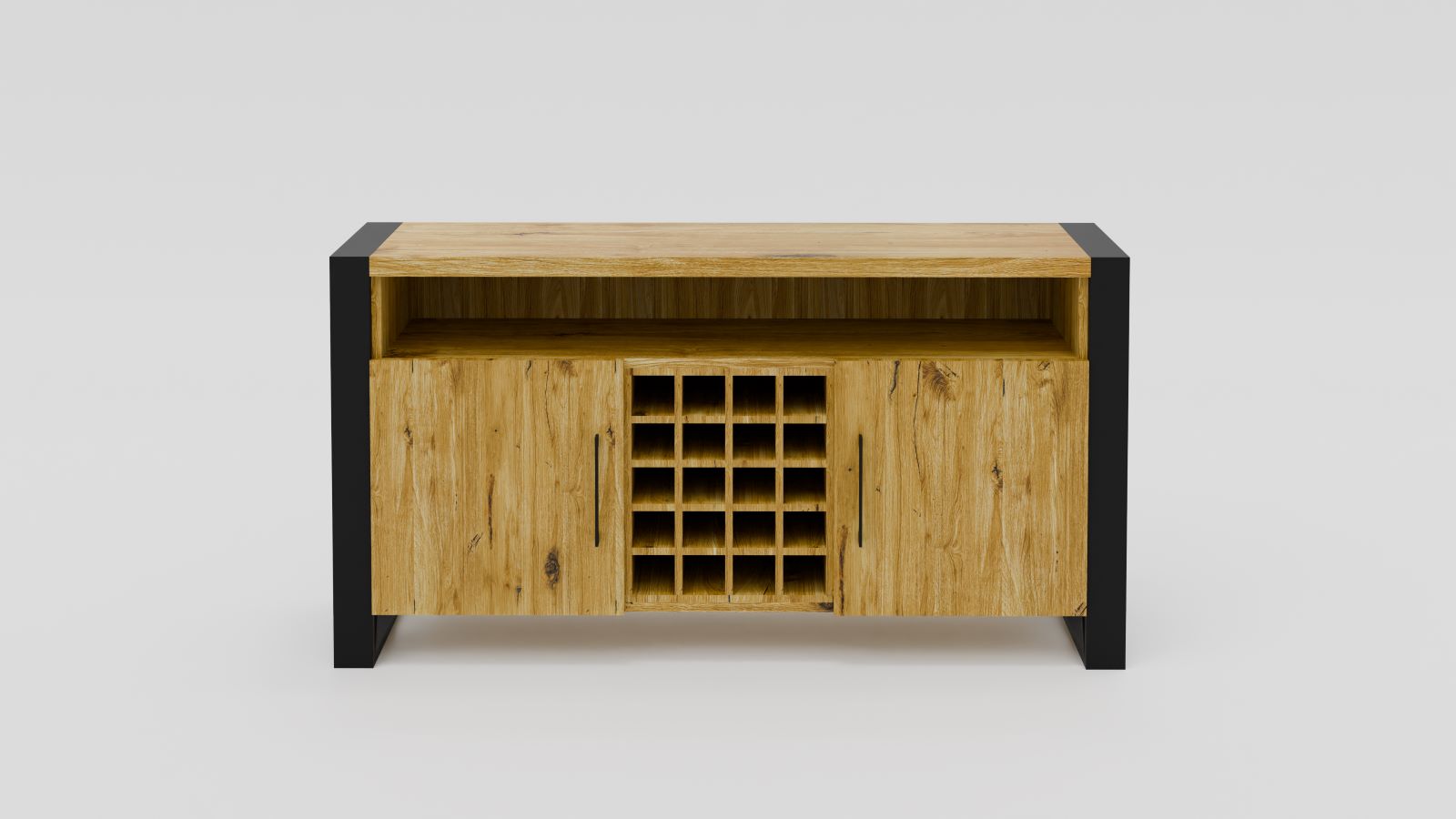 100% dębowa komoda ze stojakiem na wino. Posiada fronty (ciche domyki) otwierane na boki oraz górny blat 4cm grubości. Stalowe nogi malowane proszkowo, wykonane z profilu 80x20mm oraz 80x40mm (górna poprzeczka) . W standardzie komoda ma 85cm wysokości. Gdybyście potrzebowali zmienić jakieś parametry (wymiary, szerokość frontów itd.) to prosimy o kontakt: biuro@sedadrew.pl lub tel: 609317006.