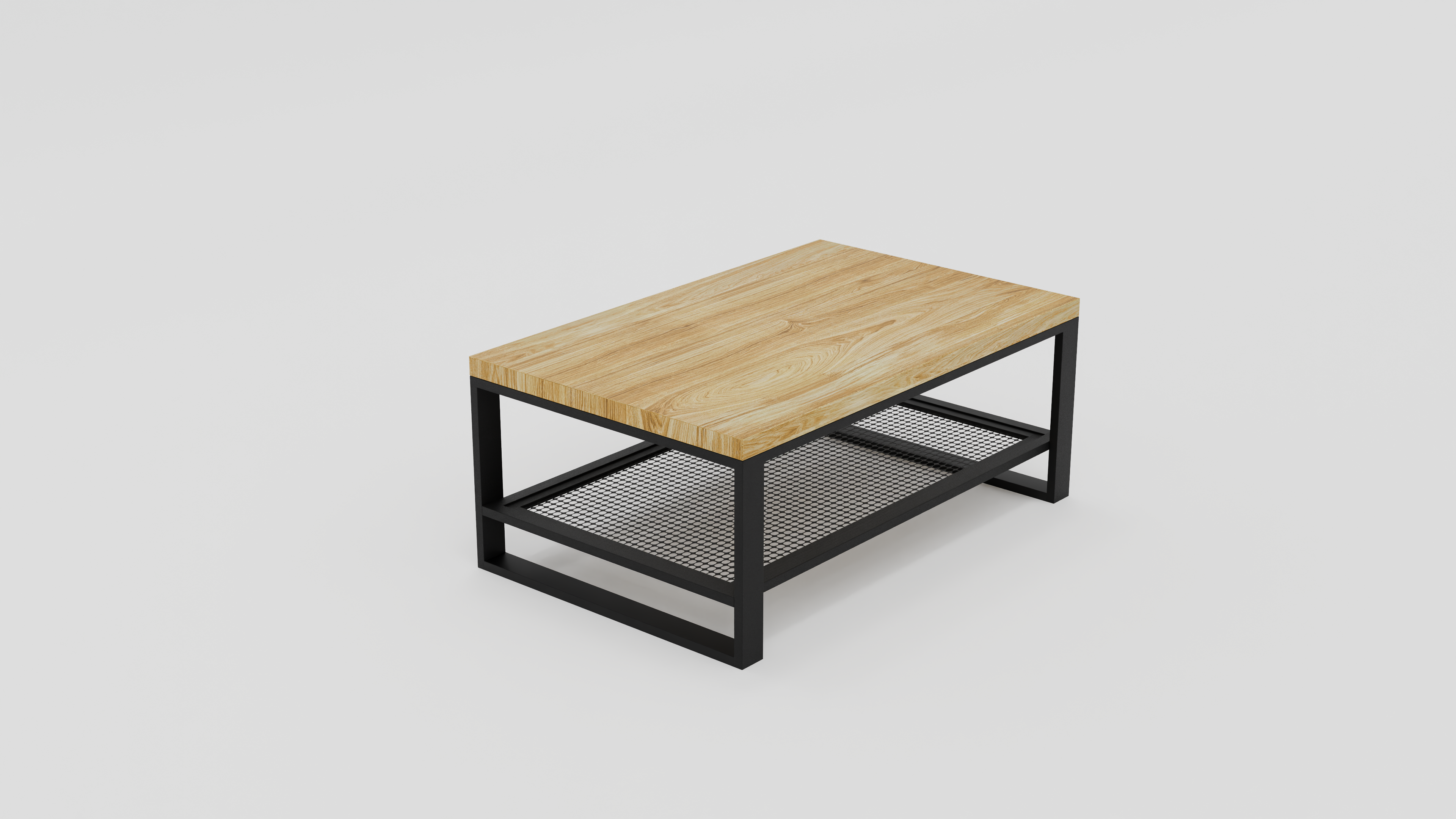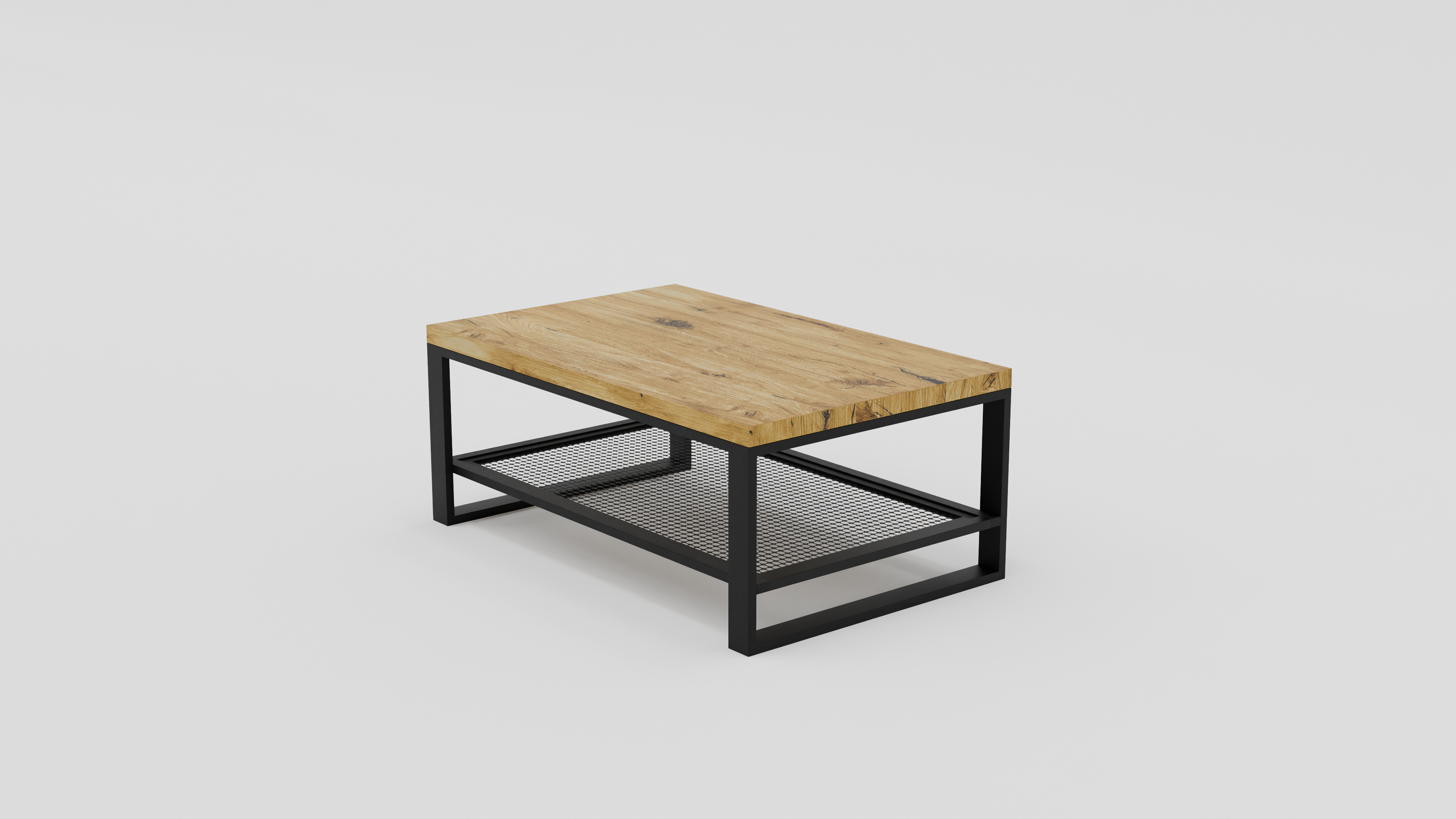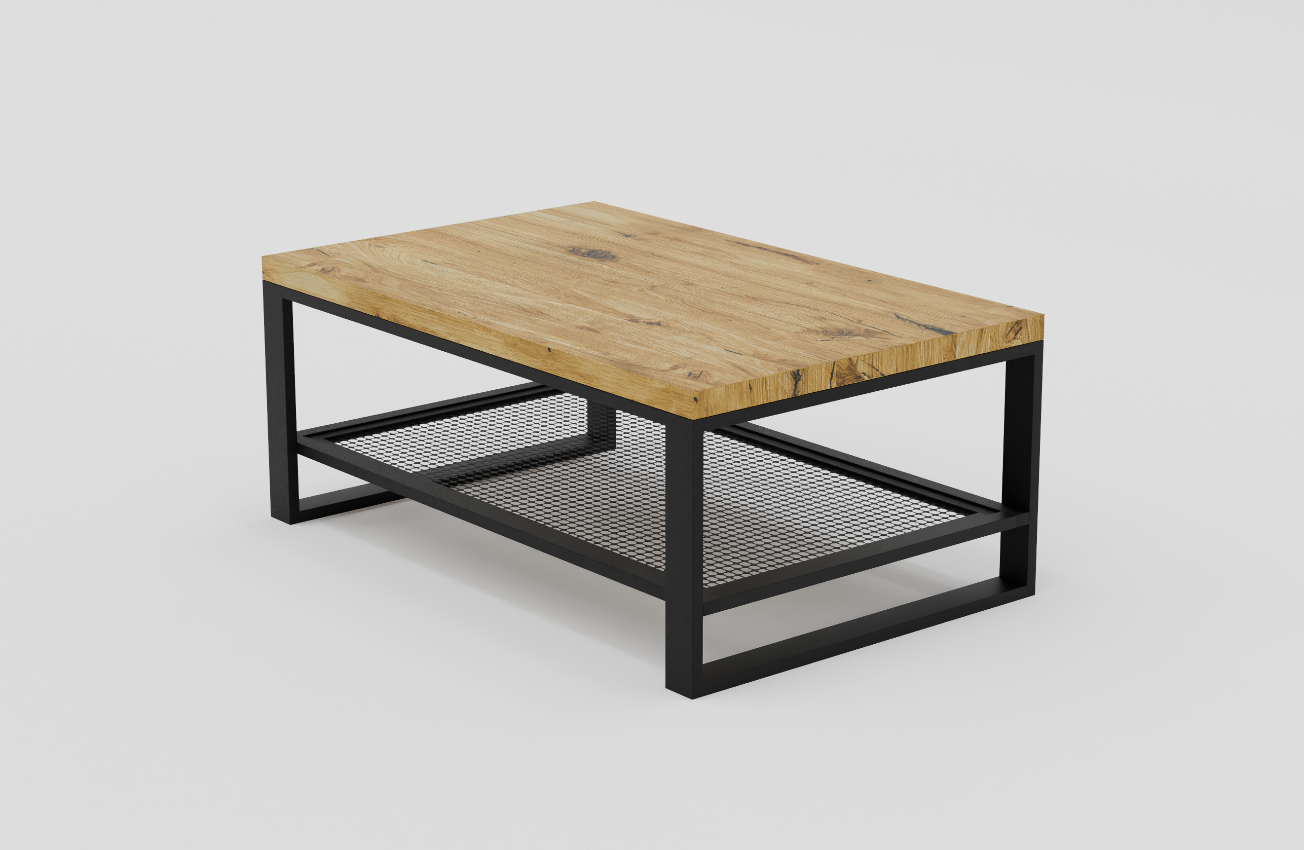 Prostokątny stolik kawowy z półką z siatki stalowej | Stolik 2B