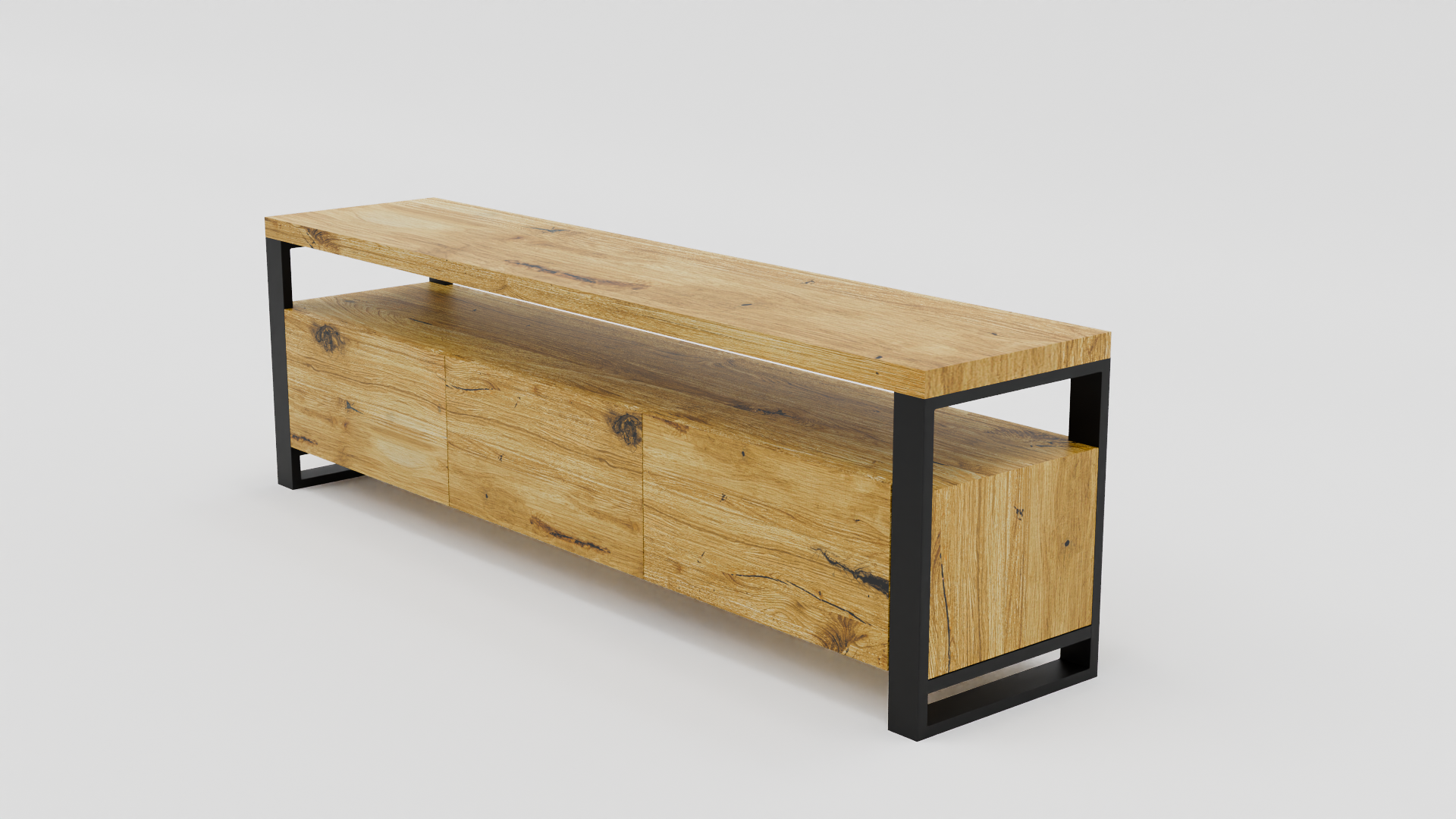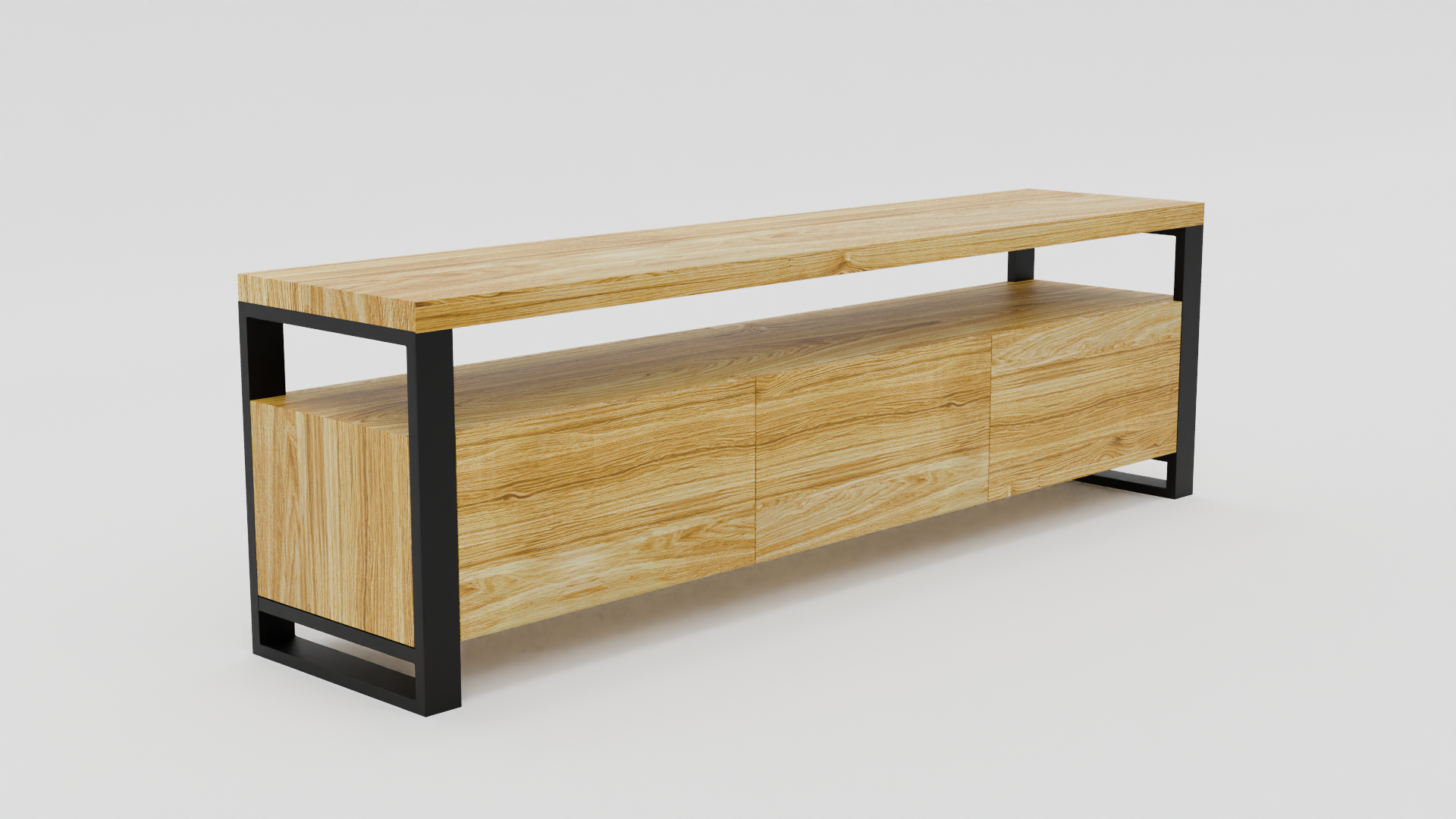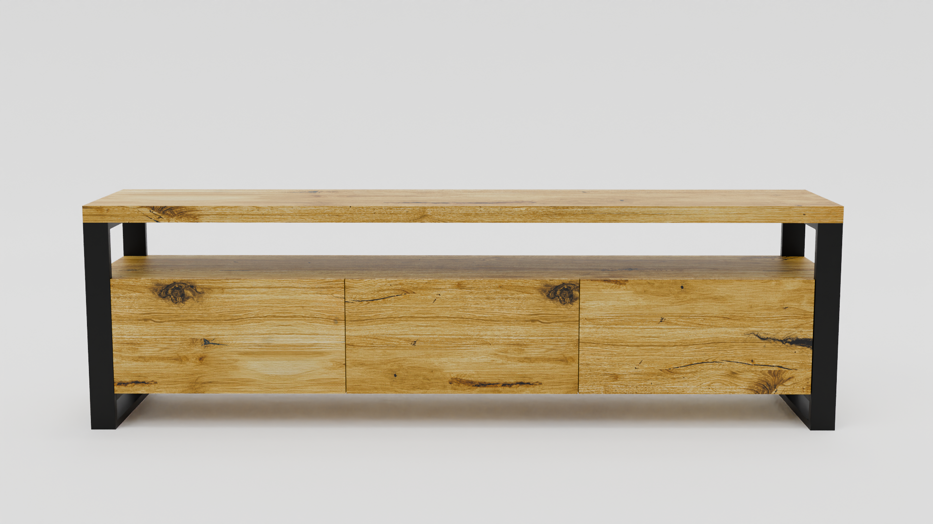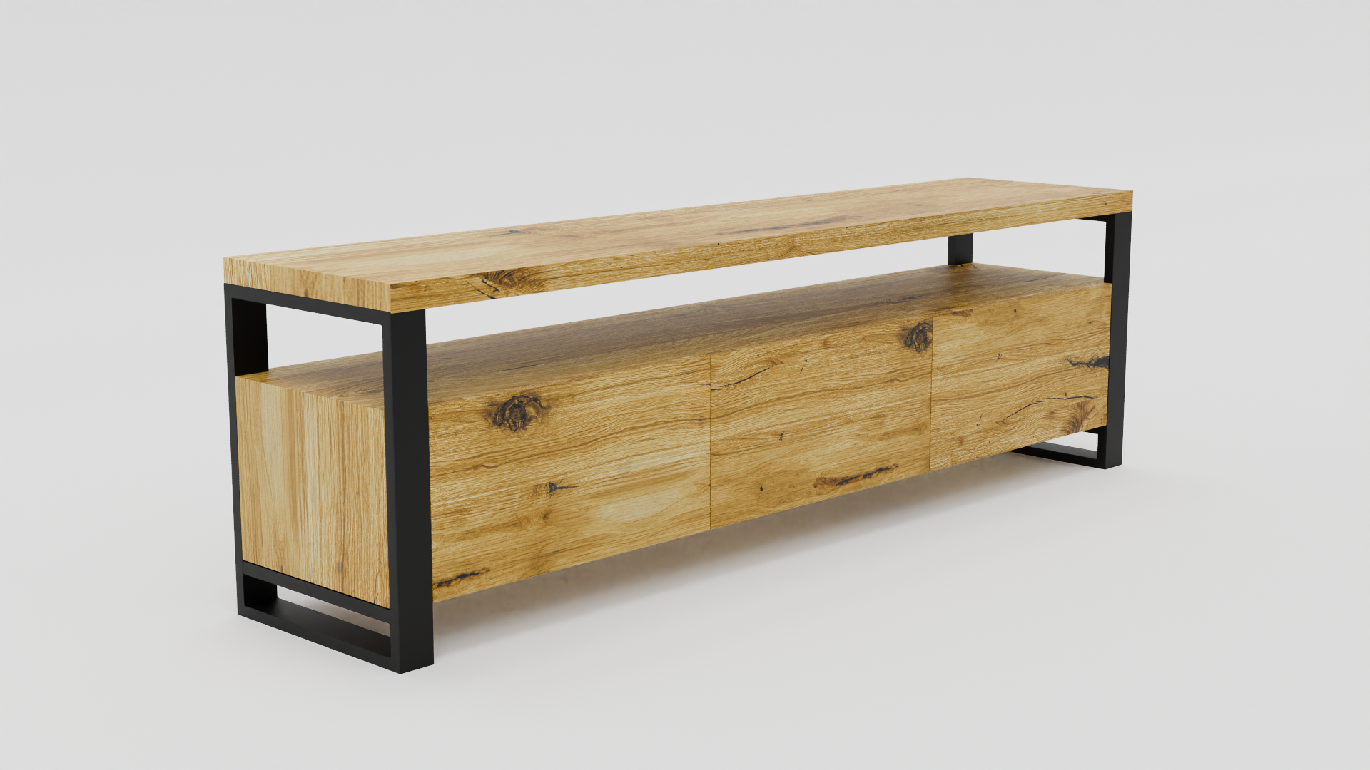 Szafka RTV z trzema zamykanymi p贸艂kami i prostok膮tnymi nogami